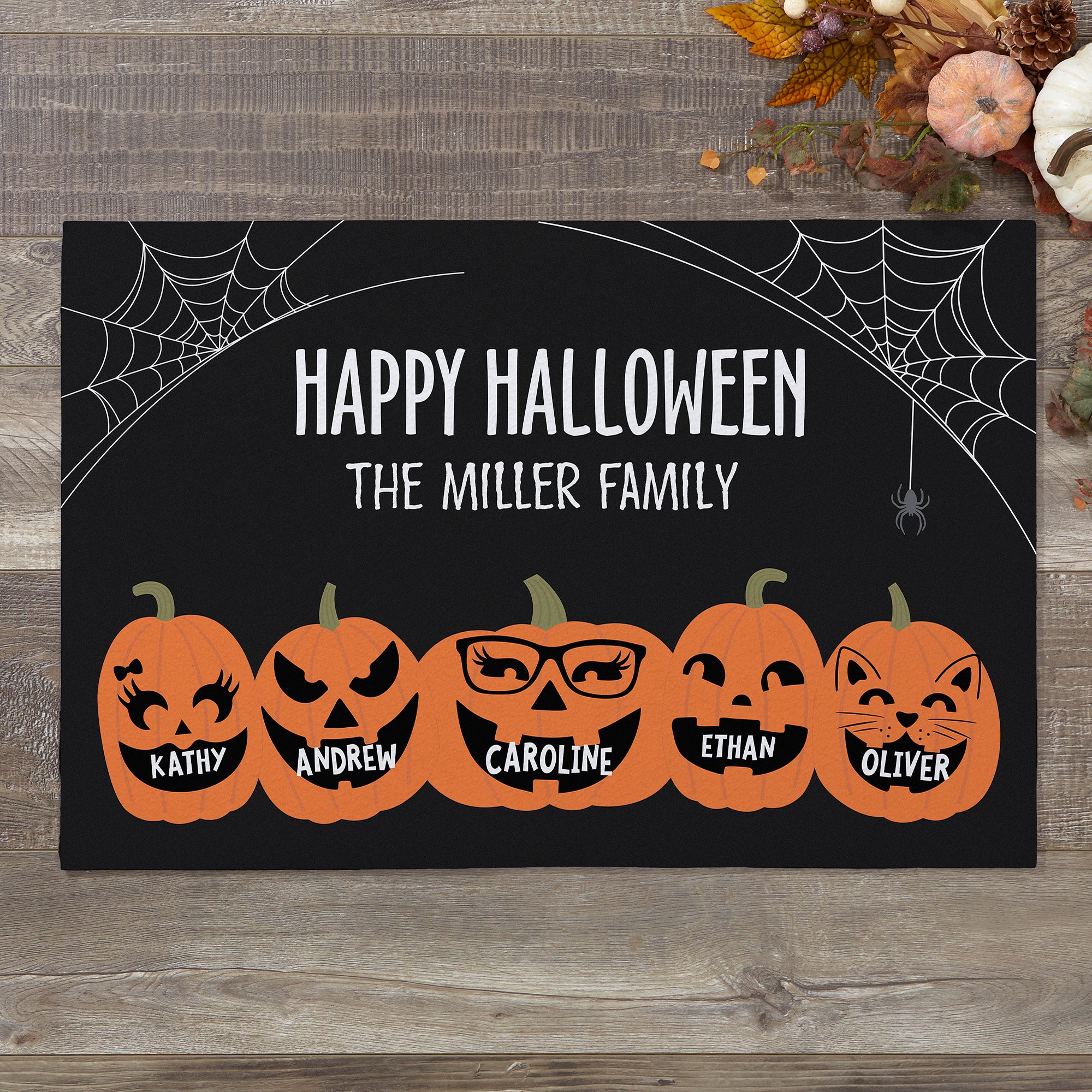 Celebrate the spooky season by welcoming your guests with our Jack-o'-Lantern Family Personalized Halloween Doormats.