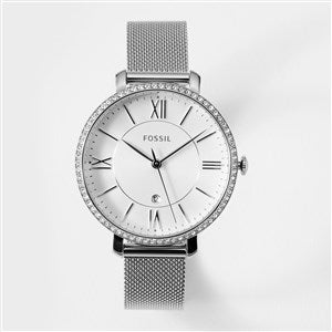 Engraved Fossil Jaqueline Silver Mesh Watch