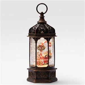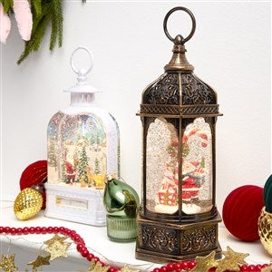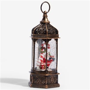 - When turned on the lantern's warm LED light illuminates the swirling glitter around Santa