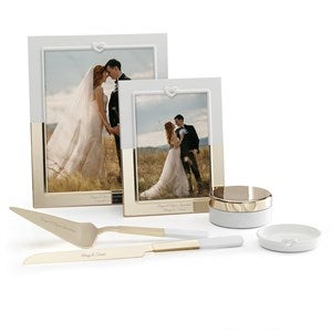 - Kate Spade’s “With Love” Collection includes this 8”x10” picture frame in white and gold.
