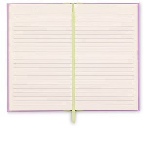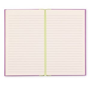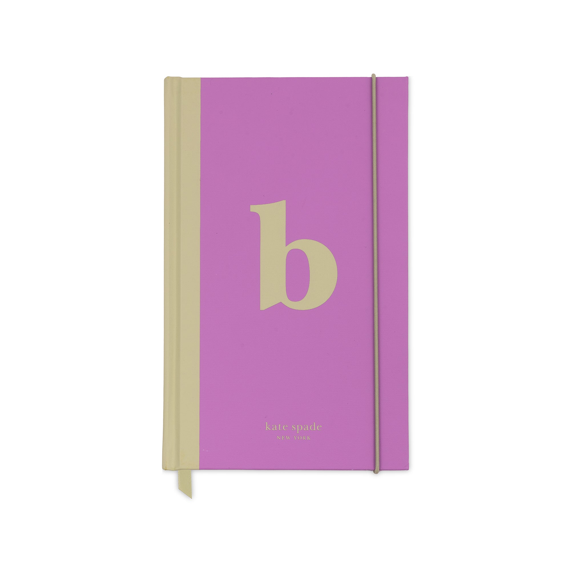 • Notebook featuring initial with inside interior pocket, coordinating ribbon bookmark, elastic closure, and colored page edges
