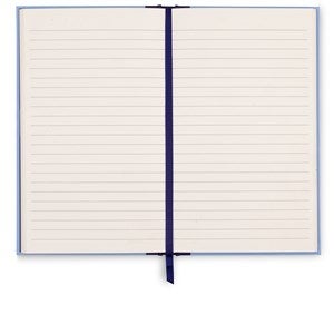 - Notebook featuring initial with inside interior pocket, coordinating ribbon bookmark, elastic closure, and colored page edges