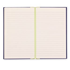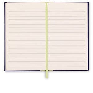 - Notebook featuring initial with inside interior pocket, coordinating ribbon bookmark, elastic closure, and colored page edges