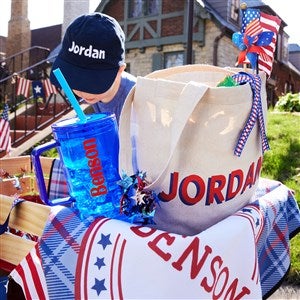 - Personalize with a name in multiple font and thread options