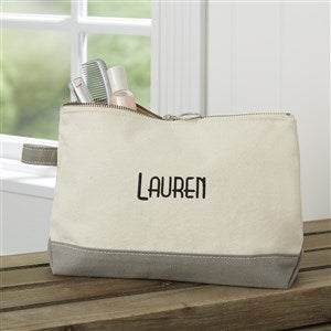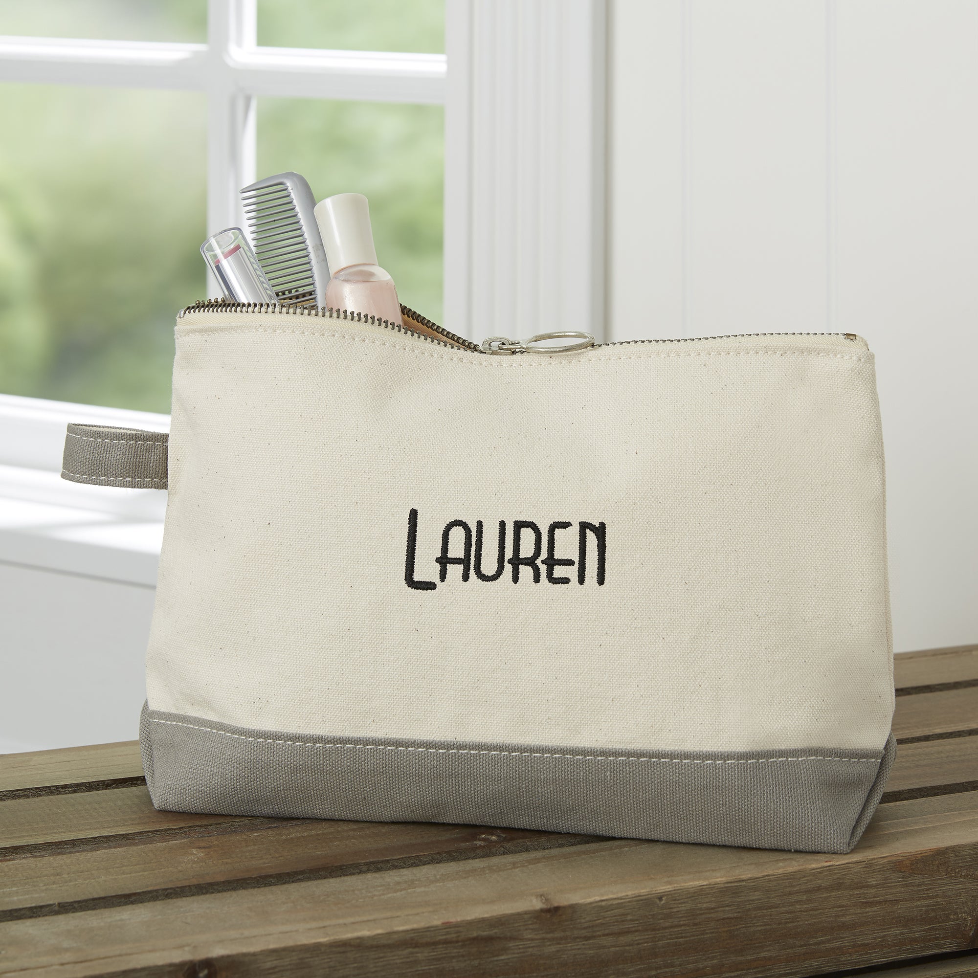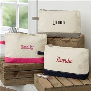 Running errands through town or taking a trip to the beach, call it yours with our Embroidered Canvas Makeup Bag.