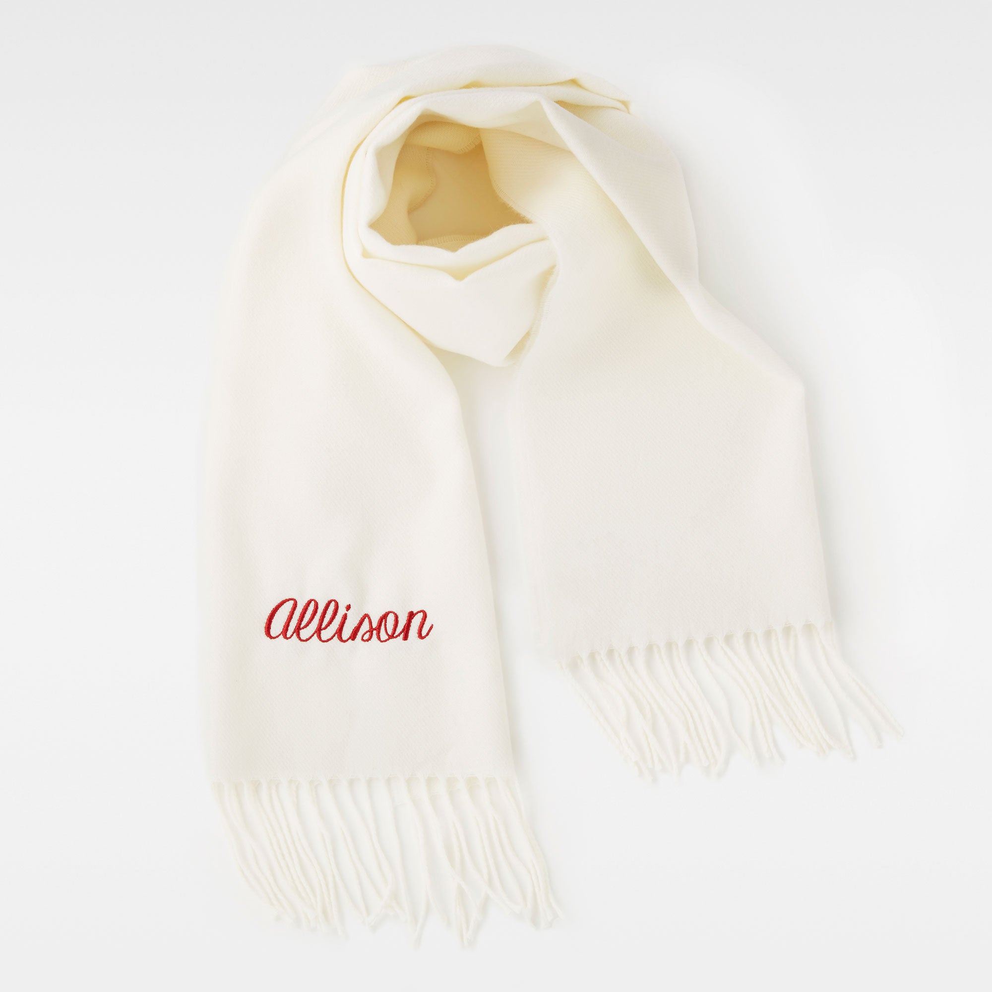 Give the gift of warmth! They are sure to enjoy and use our Soft Fringe Scarf on the cold days, and even more with your thoughtful personalization. We'll embroider their name or monogram on one end of the scarf, which they can show off all season long. Makes a great gift for girlfriends, or family members this holiday season!