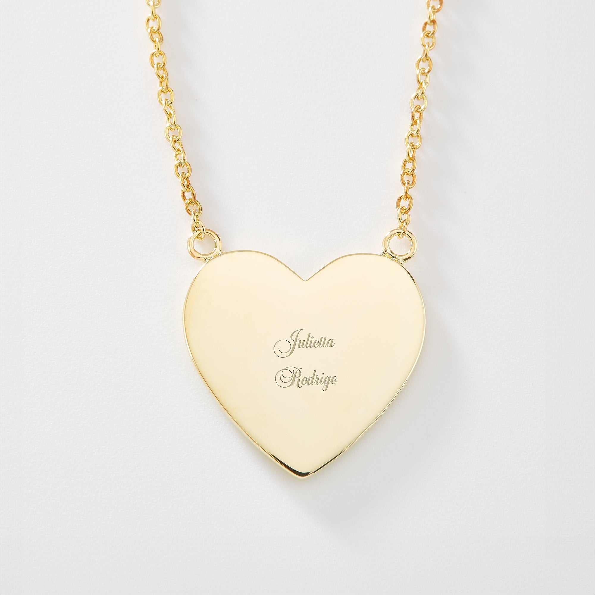 - 14K Gold plating over Sterling silver necklace with flat heart pendant stationed in place on chain