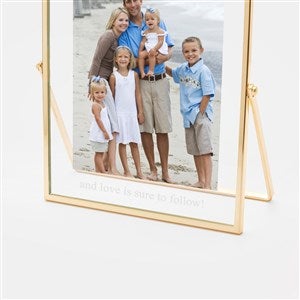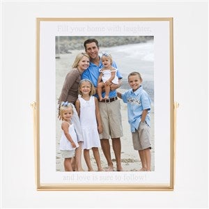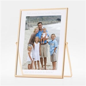 Our Engraved 5x7 Gold and Glass Picture Frame is a sleek and modern style that lends itself to any type of photo display. They'll love showing off all their pictures from their wedding to their family day at the beach. The frame fits beautifully in any kind of home décor and is an easy and thoughtful gift for anyone on your list! Engrave the front of the glass above and below the photo with their family name, vacation location, year, or a personal message.