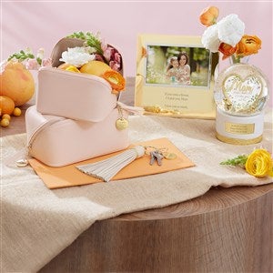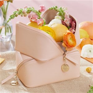 Our Engraved Large Blush Leather Beauty Case will be a lifesaver for your loved ones that love to be on-the-go! Great for skincare, cosmetics, or any kind of small accessories. It comes with a removable charm that we will engrave with their initials, name, a special date, or a short sentimental message. This makes a wonderful gift for Mother's Day, birthdays, bridal showers, and more! We also offer this beauty case in black and blush, and also in a smaller size.