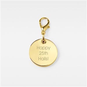 - Personalized with up to 3 lines of text on front and back of the gold charm in your choice of font