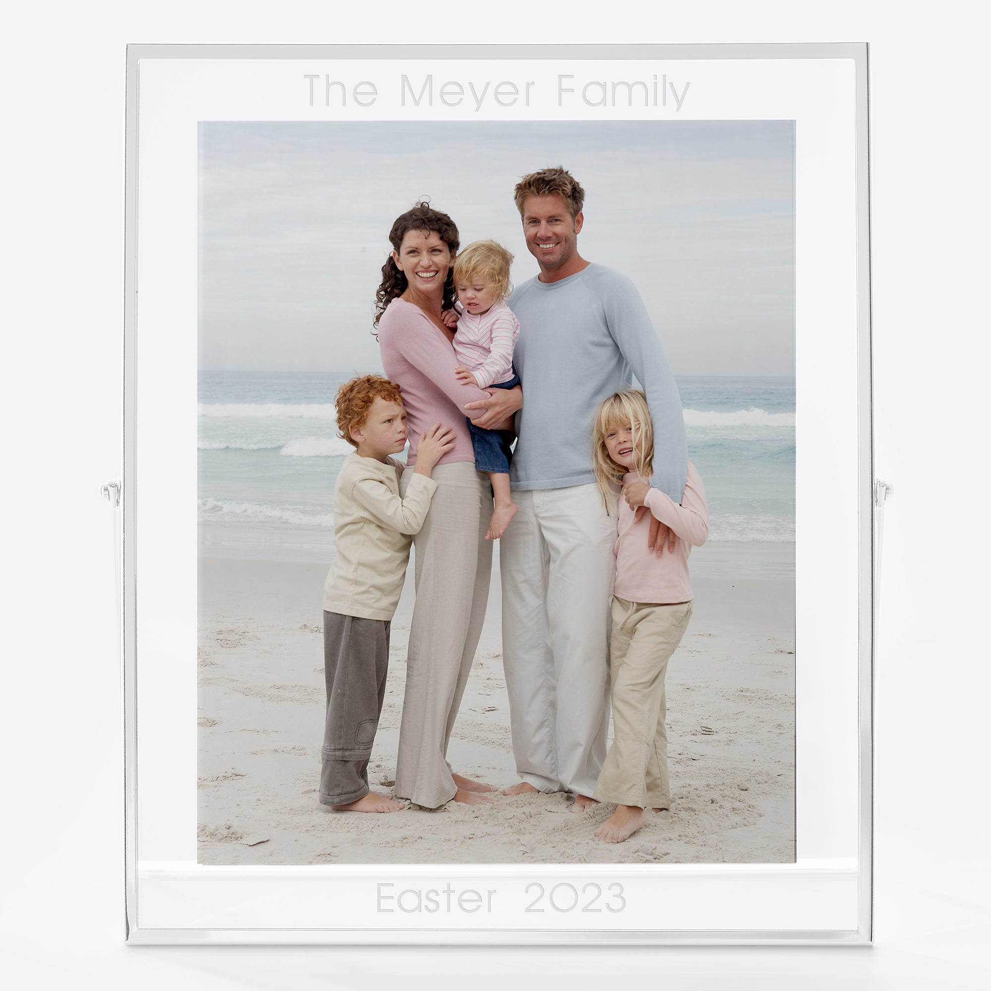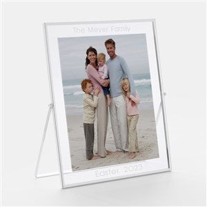 Our Engraved 8x10 Silver and Glass Picture Frame is a sleek and modern style that lends itself to any type of photo display. They'll love showing off all their pictures from their wedding to their family day at the beach. The frame fits beautifully in any kind of home décor and is an easy and thoughtful gift for anyone on your list! Engrave the front of the glass above and below the photo with their family name, vacation location, year, or a personal message.