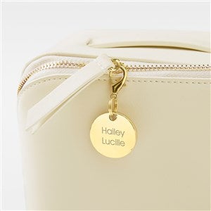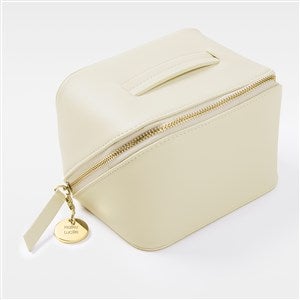 Our Engraved Small Off-White Leather Beauty Case will be a lifesaver for your loved ones that love to be on-the-go! Great for skincare, cosmetics, or any kind of small accessories. It comes with a removable charm that we will engrave with their initials, name, a special date, or a short sentimental message. This makes a wonderful gift for Mother's Day, birthdays, bridal showers, and more! We also offer this beauty case in black and blush, and also in a larger size.