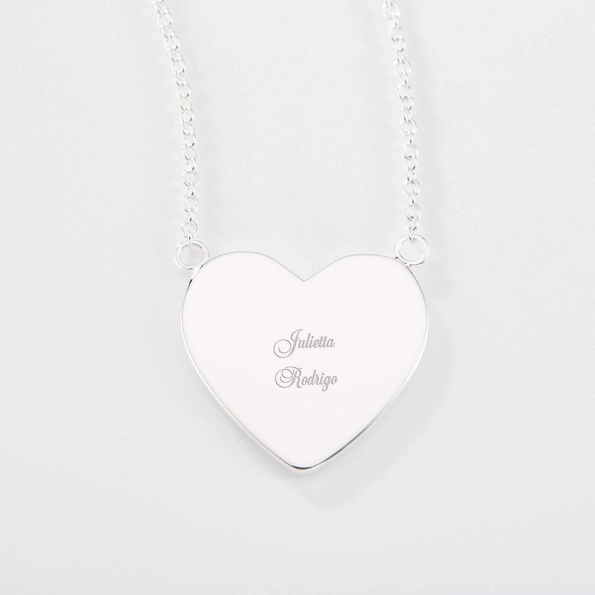 • Sterling silver necklace with flat heart pendant stationed in place on chain