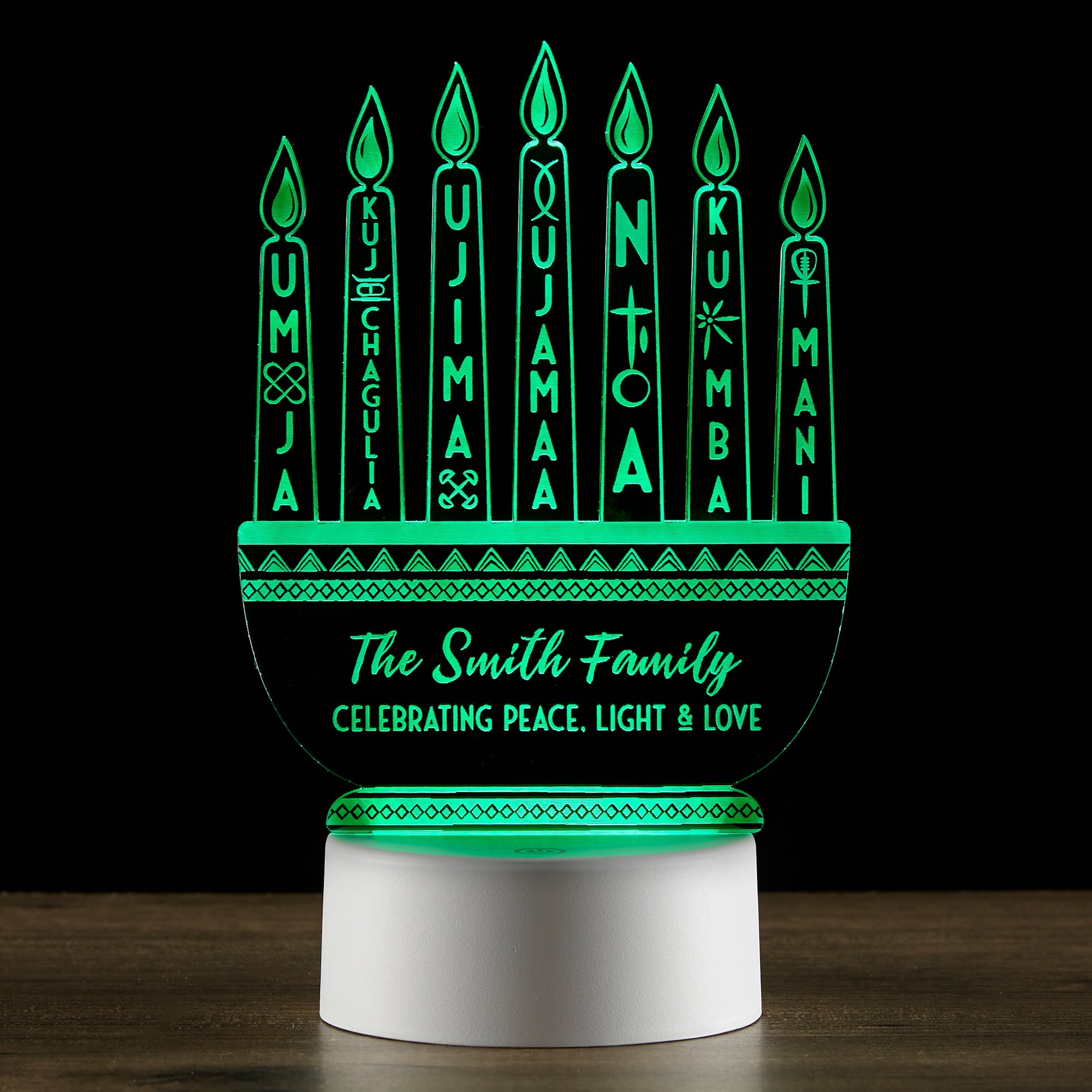 Add a touch of light to your home this holiday season with the Kwanzaa Kinara Personalized LED Sign.