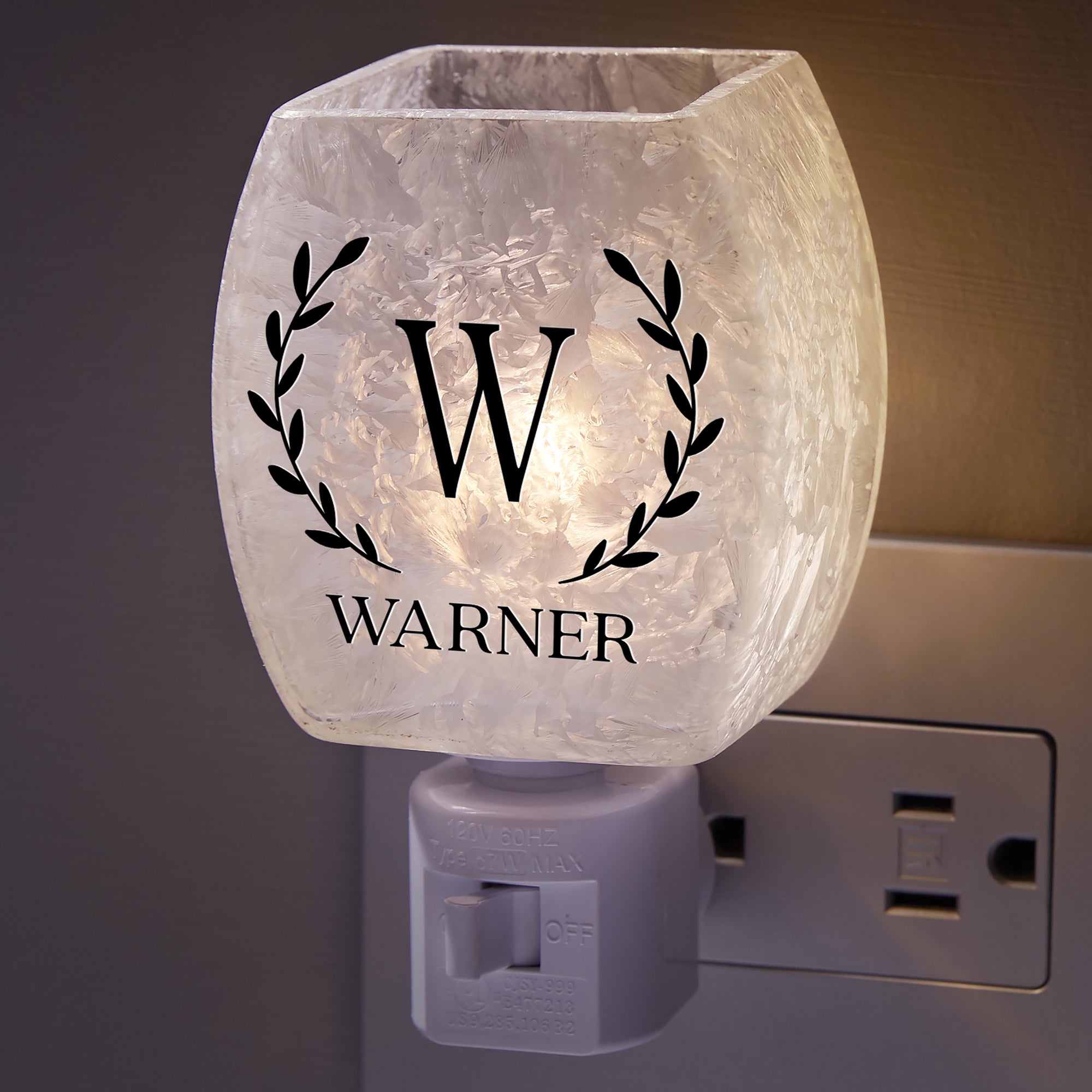 Decorate your home and gently light any room or hallway with our Laurel Initial Personalized Frosted Night Light.