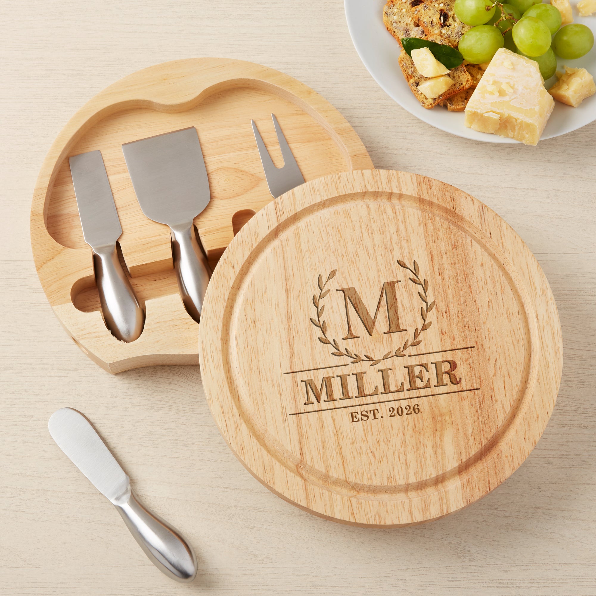 Laurel Initial Personalized Round Cheese Board & Tool Set