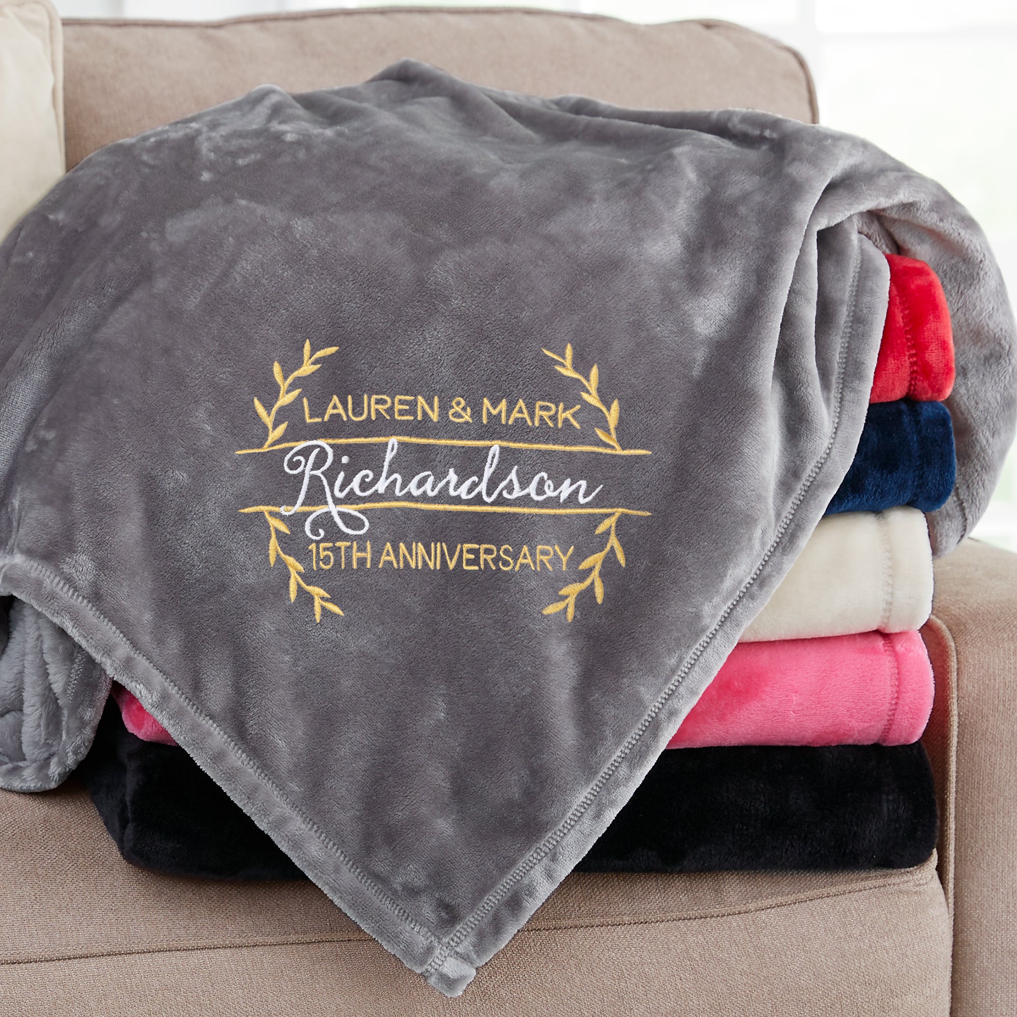 Celebrate your love with our Laurel Wreath Anniversary Personalized Fleece Throw. This one of a kind blanket is the perfect gift for anniversaries.