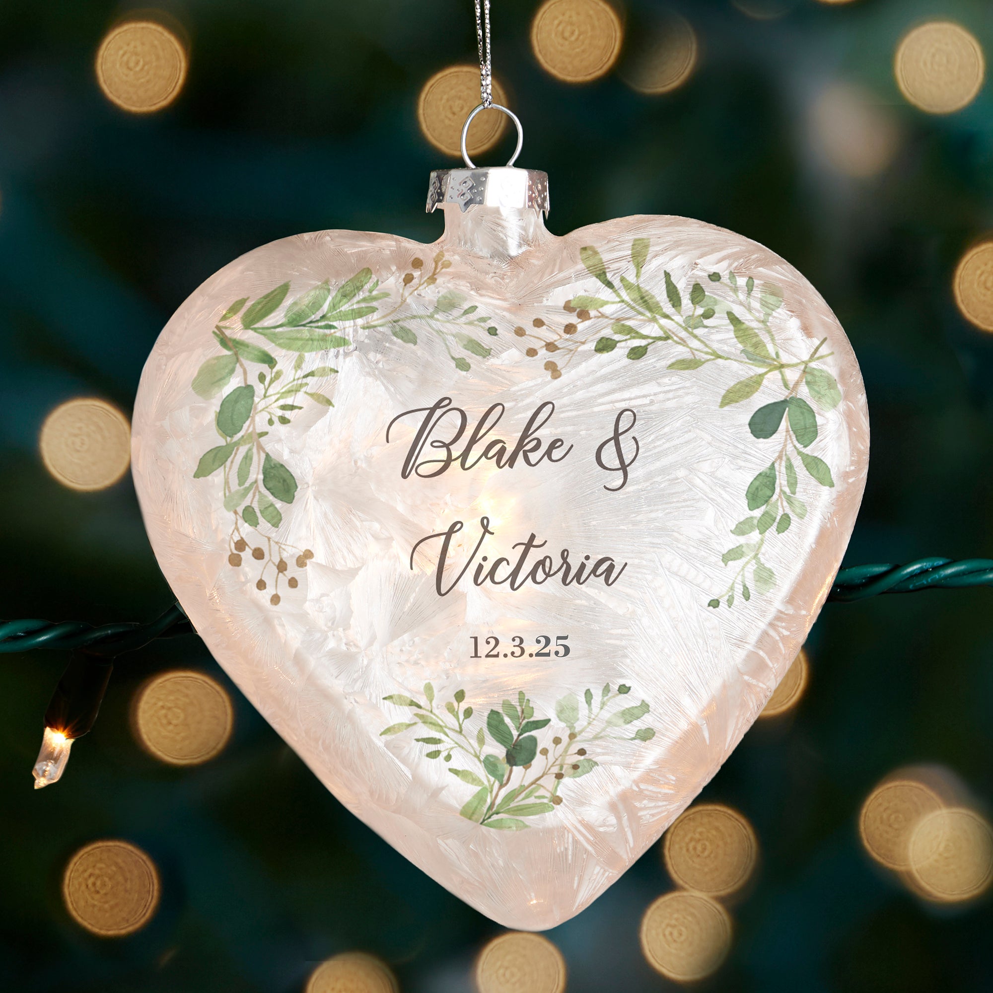 Laurels Of Love Personalized Lightable Frosted Glass Heart Ornament