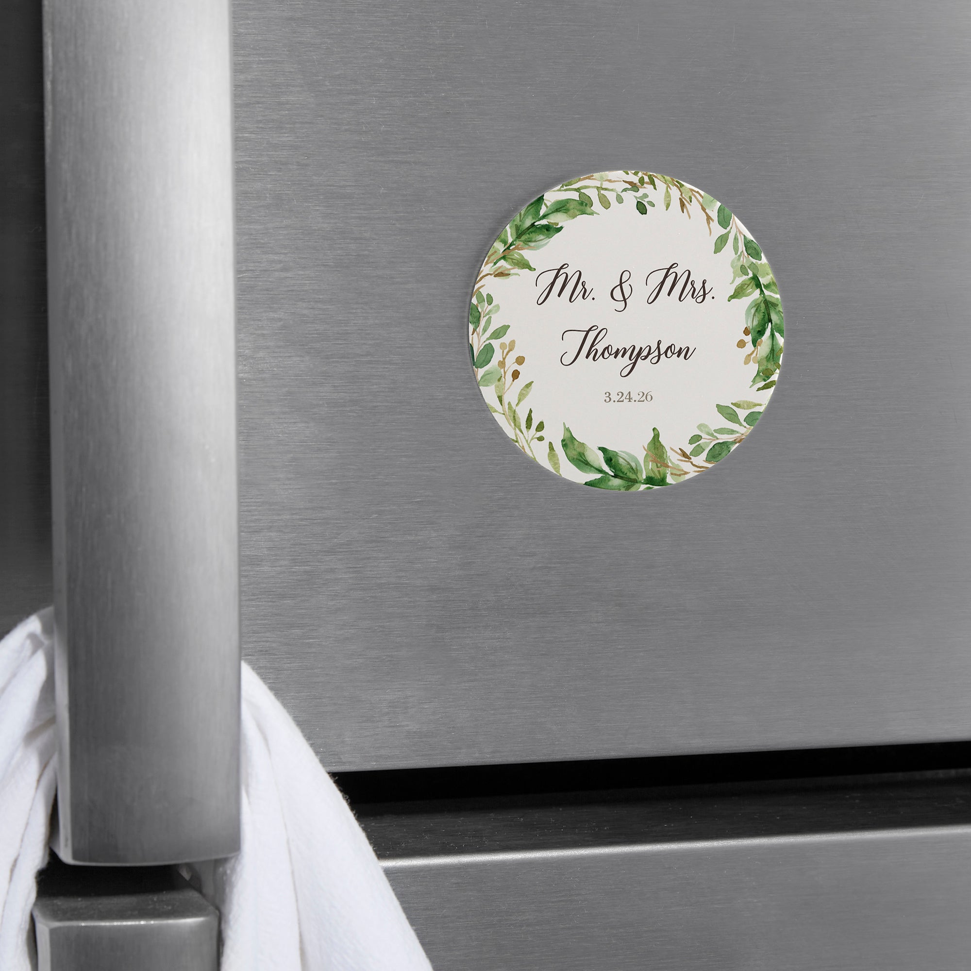Add a personalized touch to any fridge with our Laurels Of Love Personalized Metal Round Magnet.