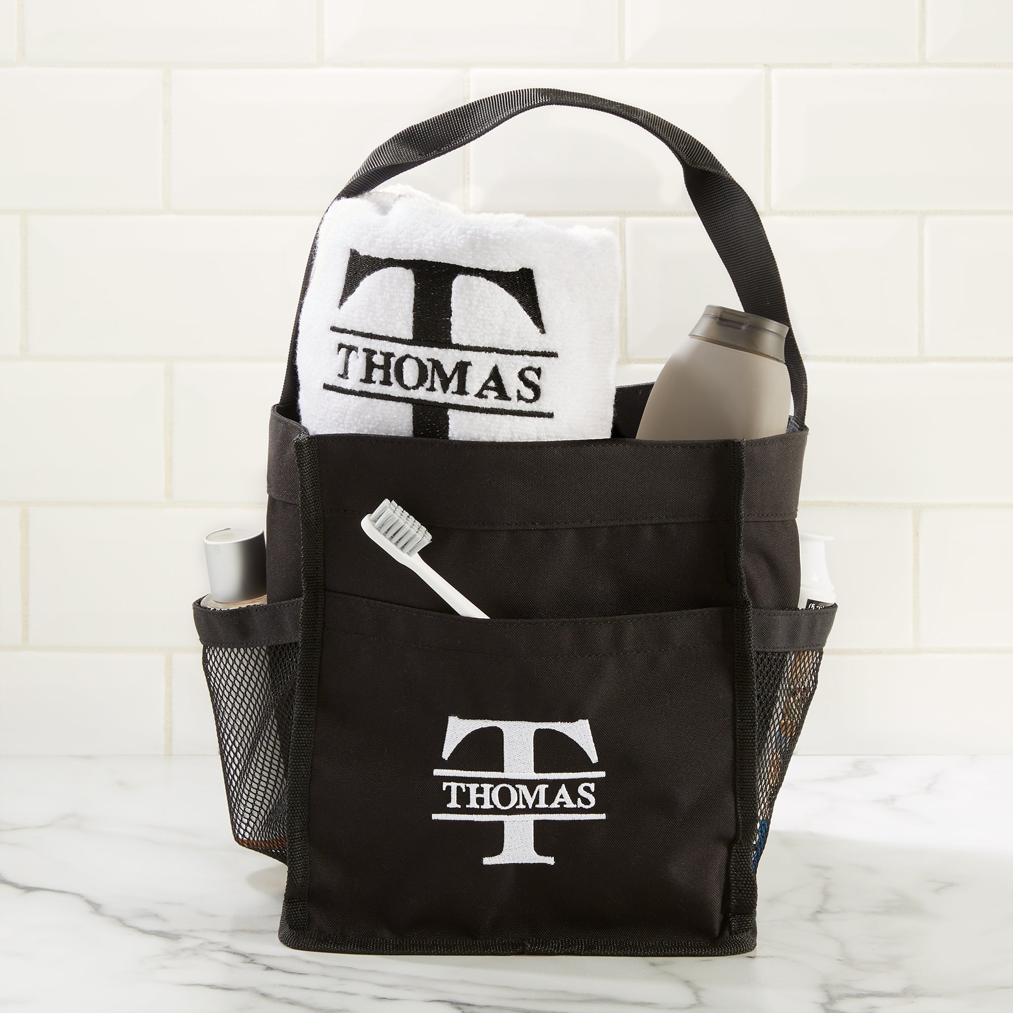 Our Lavish Last Name Embroidered Shower Caddy is perfect for dorm living and every day use, keeping bathroom essentials handy and organized. Perfect for high school graduates going off to college.