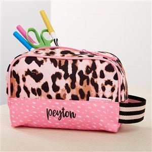 The Leopard Print Embroidered Toiletry Bag by Stephen Joseph is perfect to hold cosmetics, pens, pencils, markers, small school accessories and more!