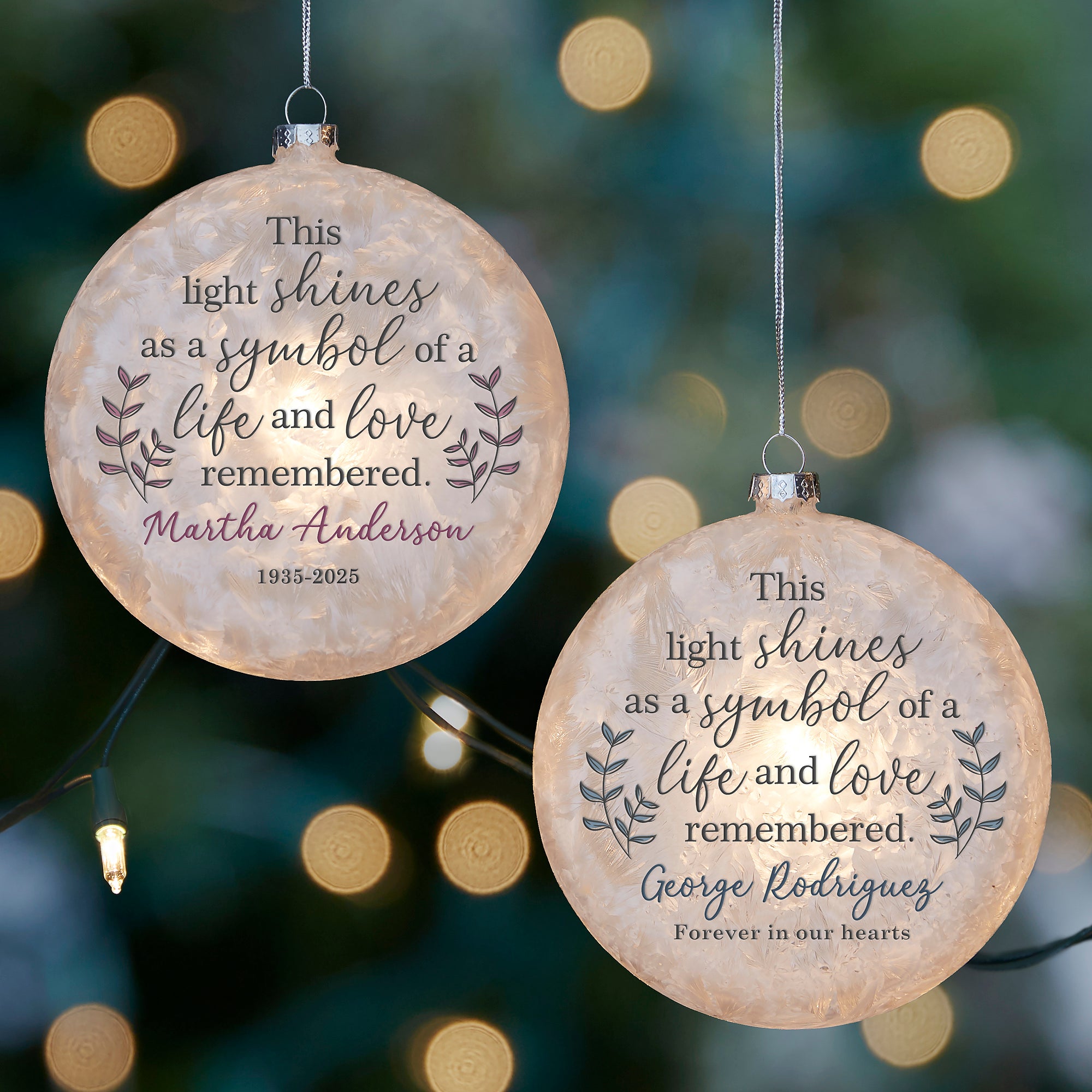 Life and Love Remembered Personalized Memorial Lightable Frosted Glass Ornament