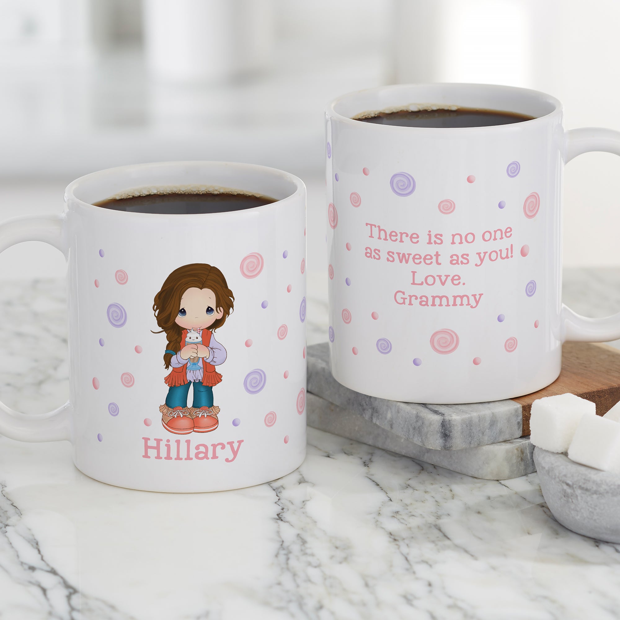 Our Life is Sweet Precious Moments® Personalized Coffee Mug is the perfect gift for any special lady! The elegant, feminine design features a colorful sweet treat design.