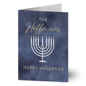 Spread the joy of the season by sending customized wishes to your friends and family with the Love and Light Personalized Hanukkah Greeting Card.