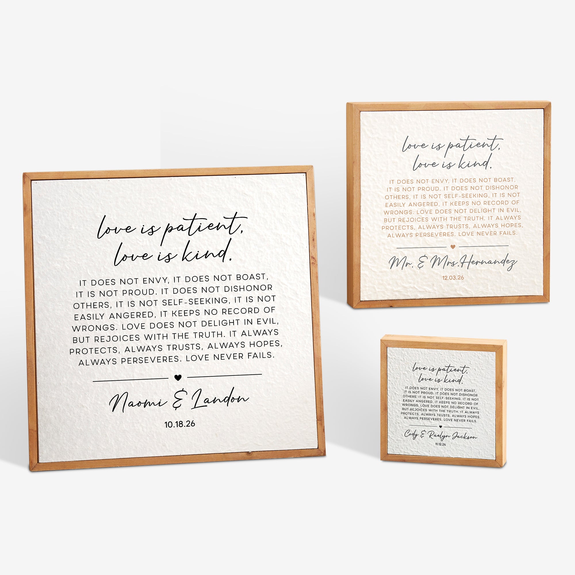 Decorate your walls with expressions of your love by hanging the Love is Patient Personalized Pulp Paper Wall Decor.