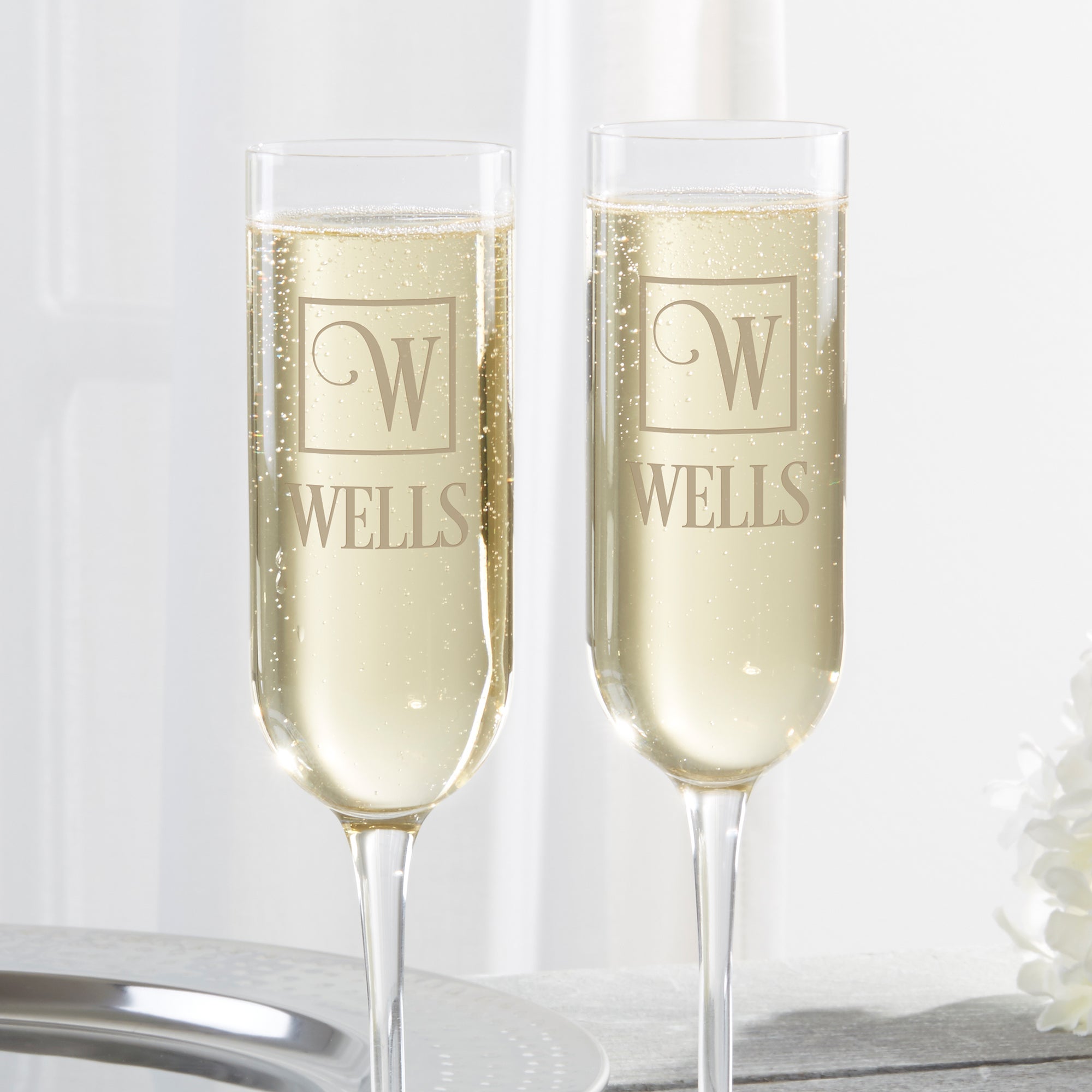 Luigi Bormioli® Square Monogram Personalized Modern Champagne Flute Set