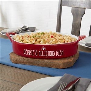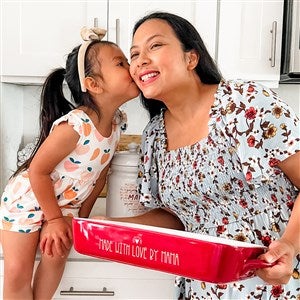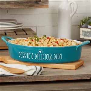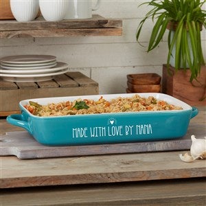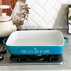 Feature your famous homemade recipes in the Made With Love Personalized Ceramic Bakeware. The hand glazed stoneware can go straight from oven to table for a beautiful table presentation.