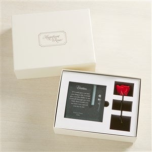 EXCLUSIVE Express your love in a beautiful and lasting way. Our keepsake crystal bud vase is crafted in stunning detail, featuring a romantic message engraved in the glass and holding a genuine preserved red rose. It’s a timeless gift to remind someone very special that they’ll have your heart forever.