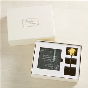 EXCLUSIVE Make any celebration one to remember. Our keepsake crystal bud vase is crafted in stunning detail, featuring a joyful message engraved in the glass and holding a genuine preserved rose in sunny yellow. This timeless gift is a beautiful way to commemorate life’s most special moments.