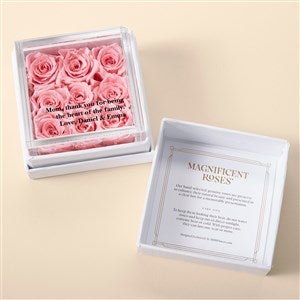 Our beautiful Magnificent Roses® Personalized For Mom Miniature Pink Rose Keepsake Box is the perfect symbol to represent how much she means to you. Makes a great gift for Mother's day, birthdays and much more!