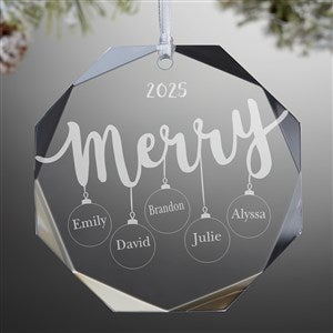 Choose the Merry Everything Personalized Premium Octagon Engraved Ornament for that perfect family on your list; listing every member of their family in a delicate ornament icon.
