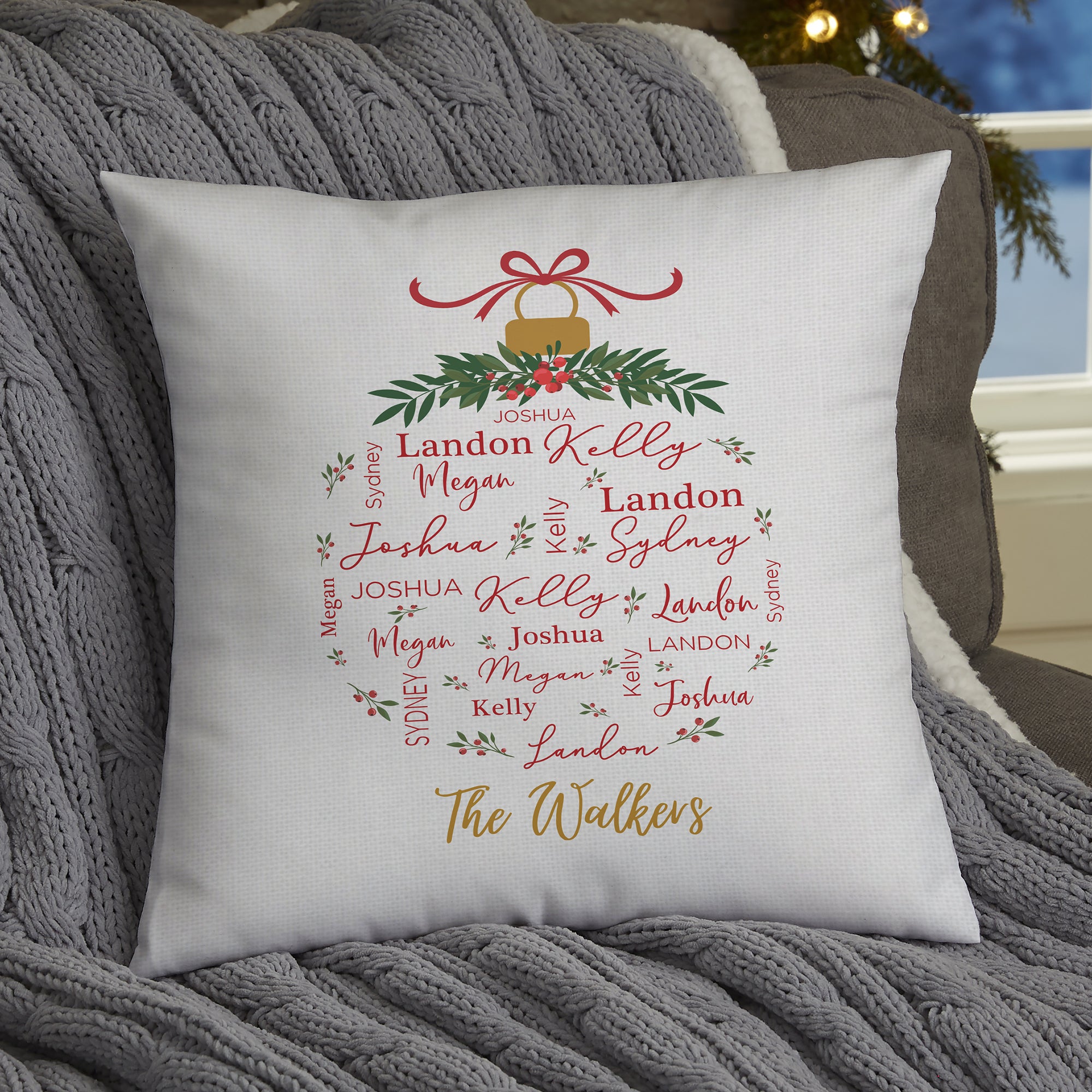 Add some holiday flair to your chair or sofa with our Merry Family Personalized Christmas Throw Pillow.
