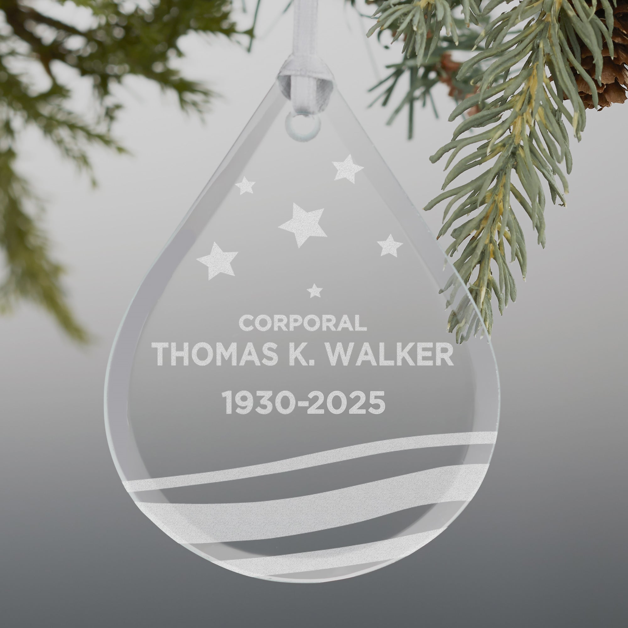 Military Memorial Teardrop Engraved Glass Ornament