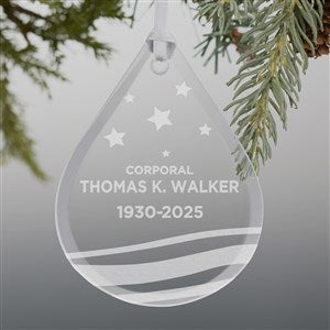 Remember your favorite soldier with great pride and honor with our Military Memorial Teardrop Engraved Glass Ornament.