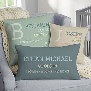 When only the most precious gift will do, choose our Modern All About Baby Boy Personalized Baby Throw Pillow to create a unique gift. Perfect in the nursery propped up in their rocking chair.
