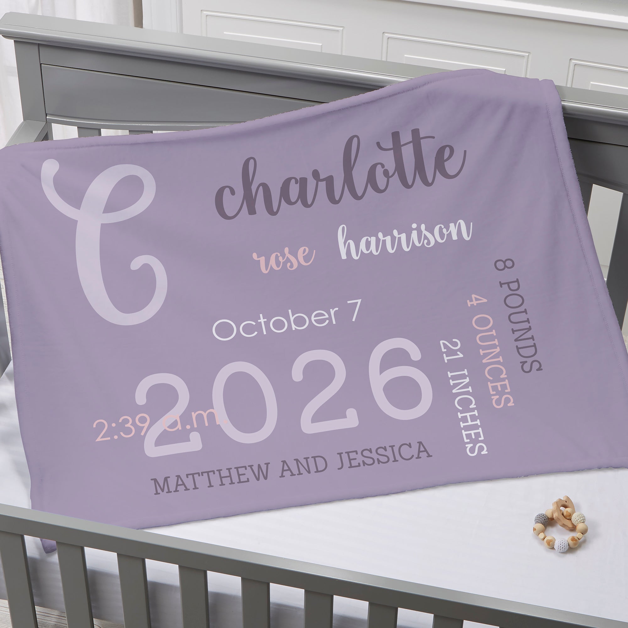 - Personalized with a full name and birth information