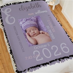 - Upload any photo and personalize the blanket with baby's full name and birth information