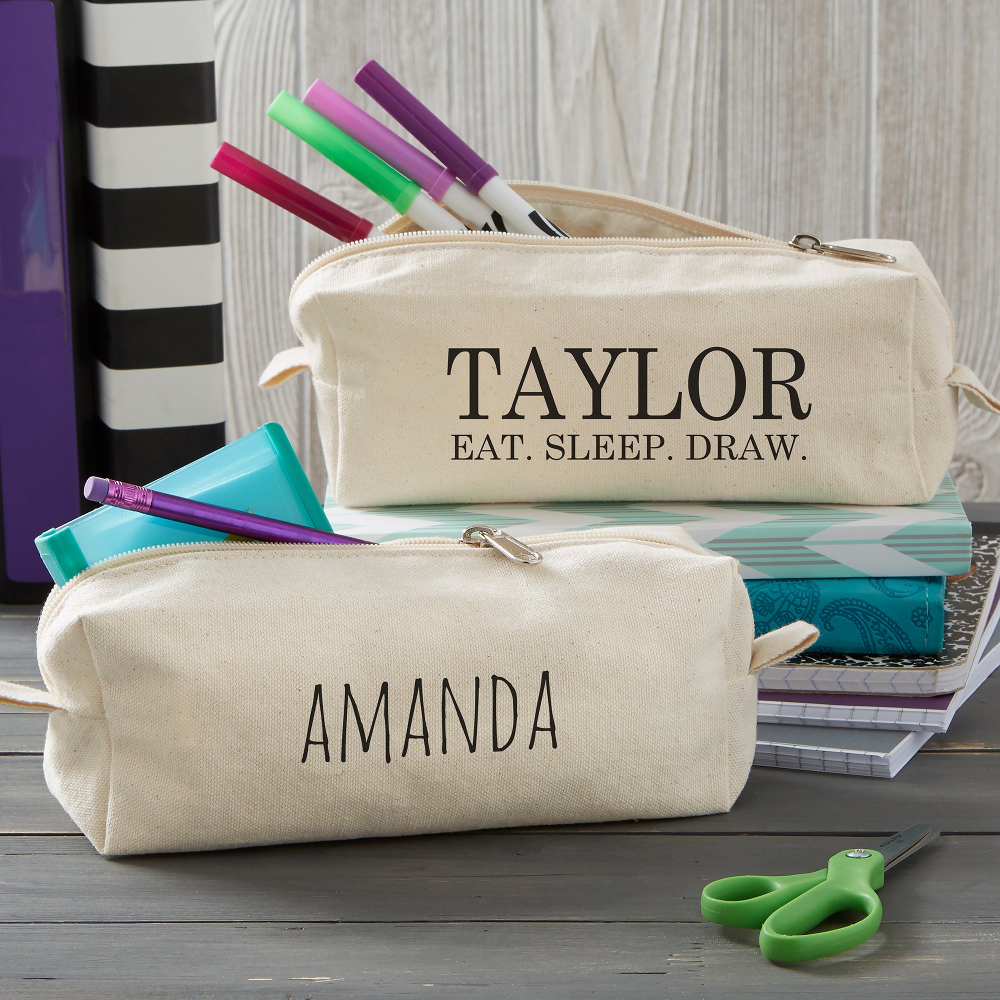 Modern Name Personalized Canvas Pencil Case