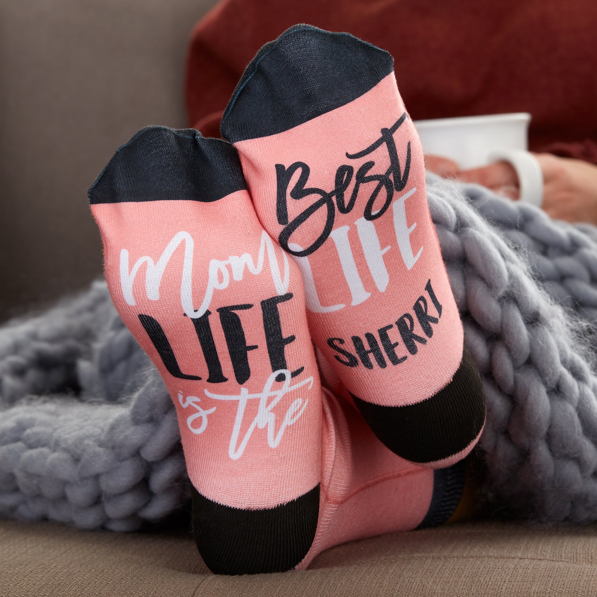 Prop your feet up and enjoy a good book while you wear our Mom Life Personalized Adult Socks. With four mom-themed phrases available to be printed on the sole of the socks, these make the perfect Mother's Day gift.