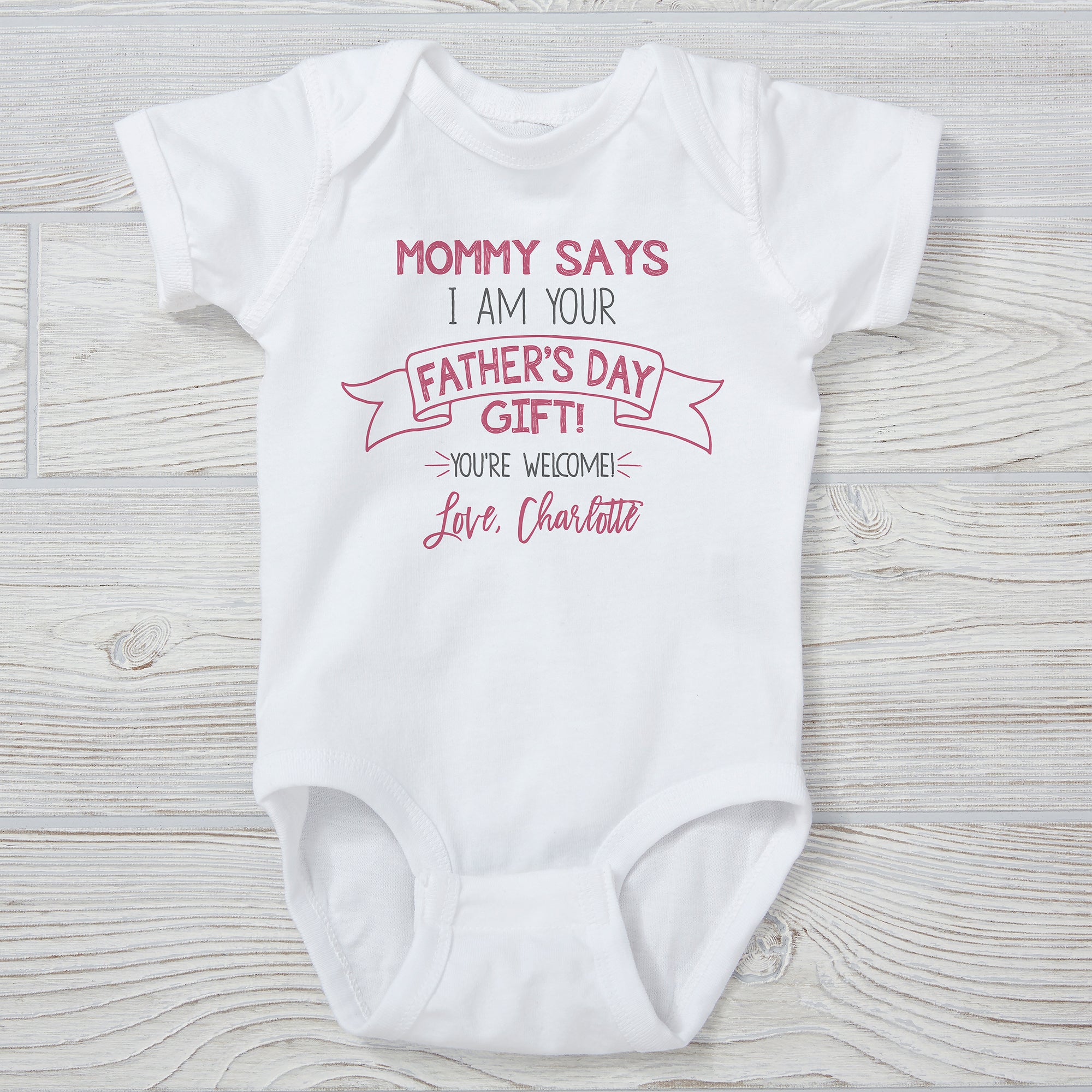 Mom Says I'm Your Father's Day Present Personalized Baby Clothing