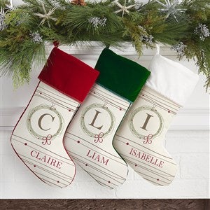 Holiday Wreath Monogrammed Christmas Stockings