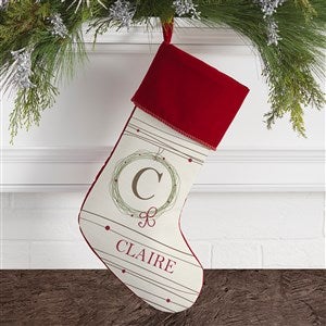 • Personalize the stocking with any name and initial displayed in the center of our wreath design