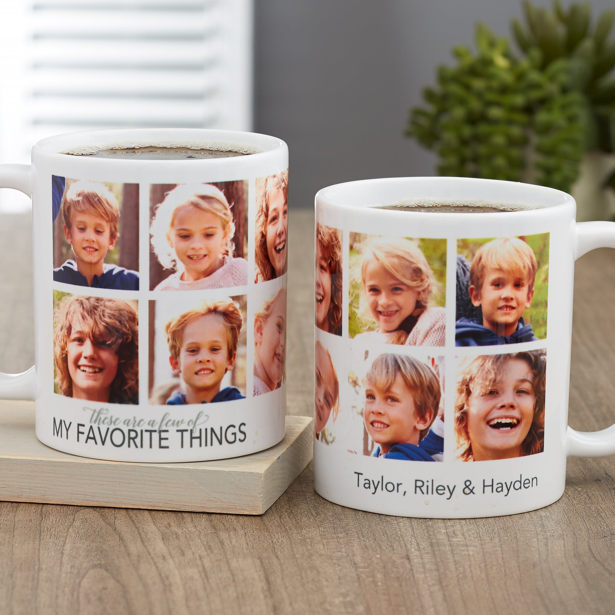 Enjoy any beverage surrounded by all your favorite things with the My Favorite Things Personalized Photo Coffee Mugs.
