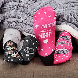 Display what your Valentine calls you when wearing our My Valentine Personalized Adult Photo Socks. Perfect for every member of the family.
