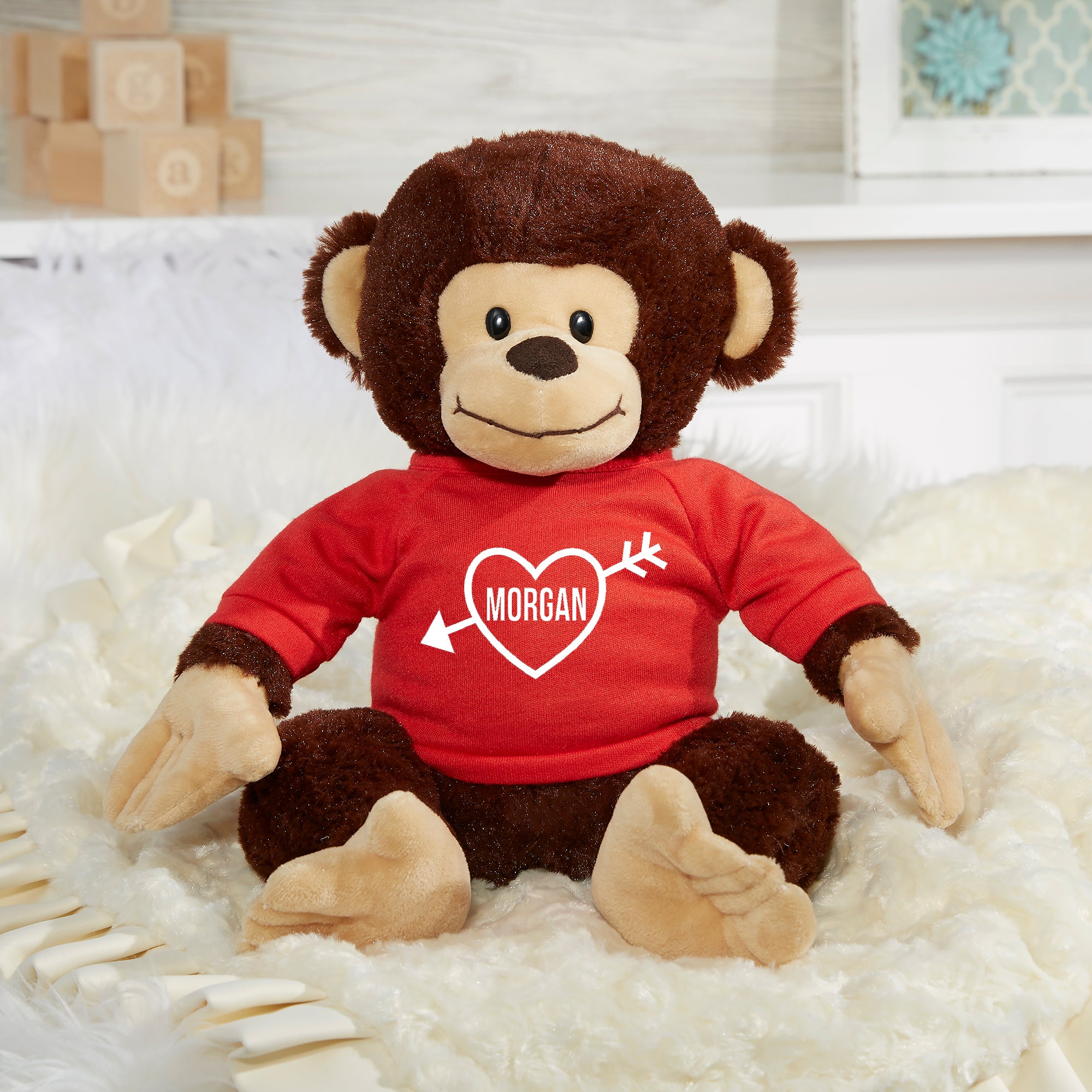 Send cuddles of love to your Valentine with our My Valentine Personalized Plush Monkey! His cute little face and super soft fur makes him perfect for snuggling all year through!