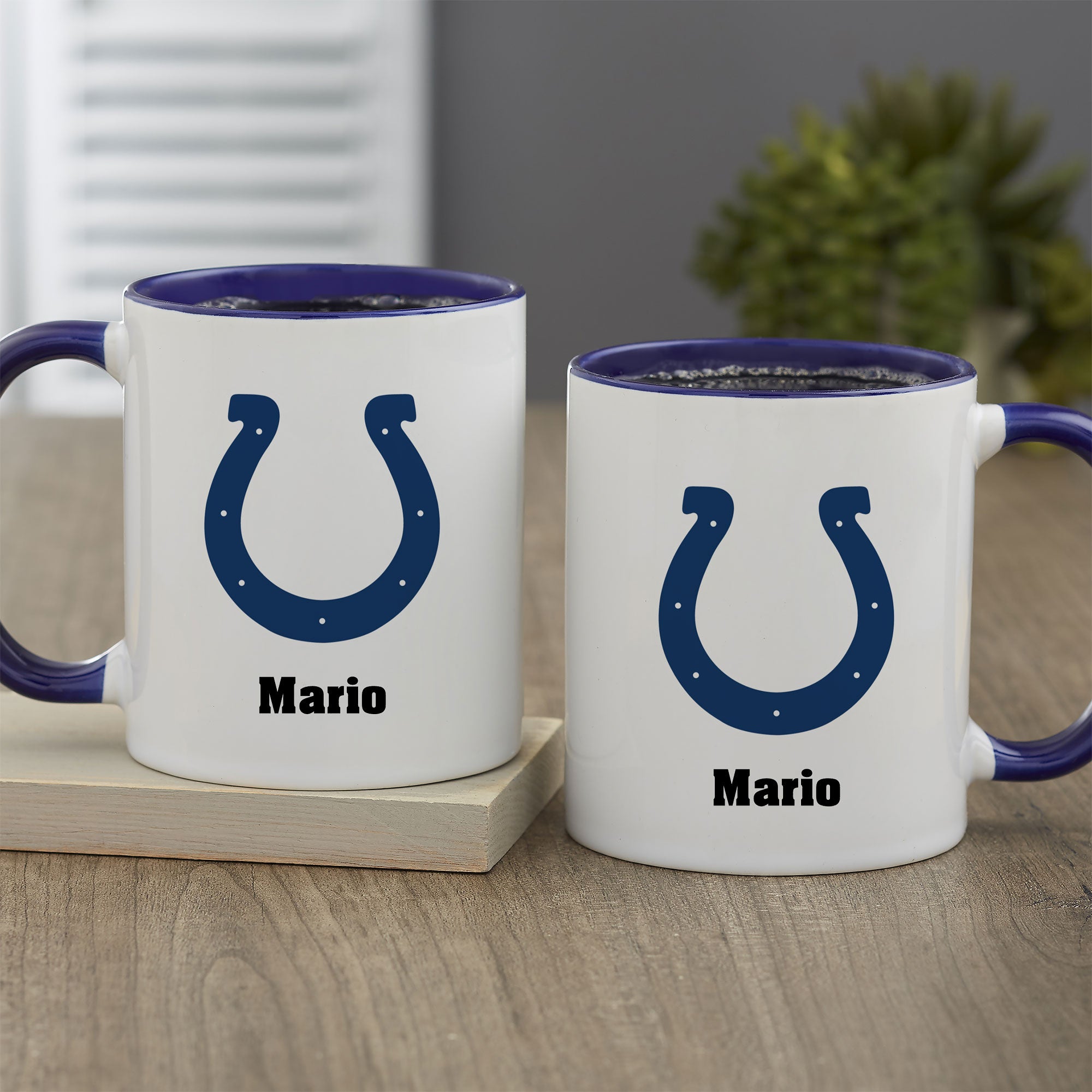 Support your favorite team day or night with the NFL Indianapolis Colts Personalized Coffee Mug. Custom sports mugs make a perfect gift for any football fan year round!